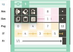 En el cuadro, la casilla de la longitud del segmento se encuentra al final de la fila de los Pulsos del segmento (Psg), en la columna vertical negra, e indica la cantidad de pulsaciones del segmento. Puedes modificar su longitud cambiando el número de Pulsos de esta casilla.