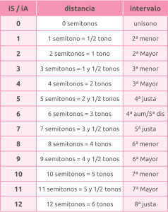 Las distancias entre las Notas, ya sea un iS (corresponde al intervalo melódico, entre dos notas consecutivas) o un iA (corresponde al intervalo armónico, entre dos notas simultáneas), siguen las siguientes equivalencias: