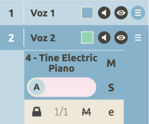 Por último puedes ajustar el sonido del metrónomo de la voz pinchado repetidamente en la letra M que aparece abajo en el panel de la voz, entre la fracción y la «e». Hay cuatro opciones: M1, M2, M3 y M4, además de la M tachada que silencia el metrónomo.
