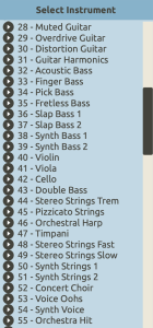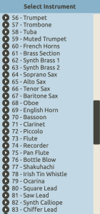 Aparece entonces el siguiente listado con 128 instrumentos posibles para asignar a la voz:
