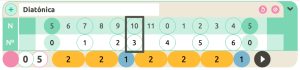 Sin embargo en una escala diatónica con transposición 5 (también llamada FaMayor), el Nº(3) equivale a la N(10) o nota Si bemol: