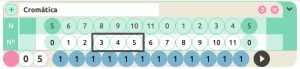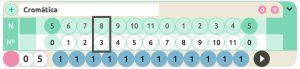 Y en una escala cromática con transposición 5 (cromática desde Fa), el Nº(3) equivale a la N(8) o nota Sol#: